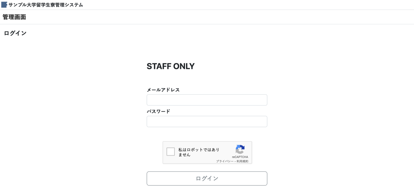 管理画面に入るためのログイン画面です。管理者として登録された方のみログインすることができます。